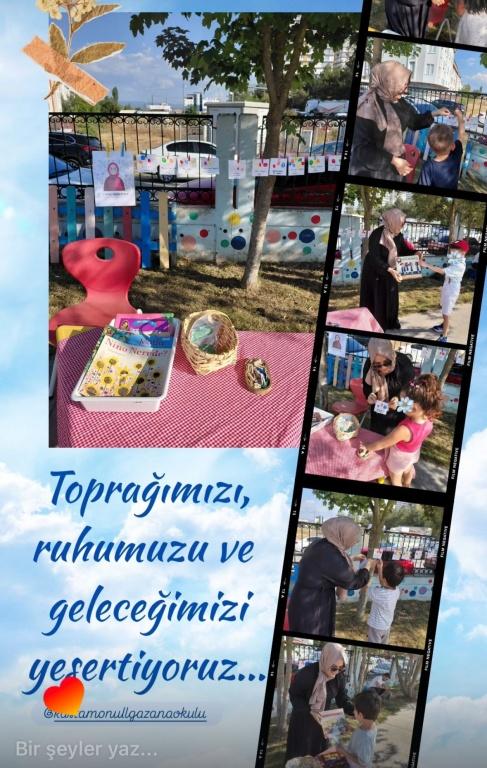 Gelenekselleşen okul tanışma etkinliğimizde bu yıl "YEŞİL VATAN" vardı. Her aile bir ağaçtır dedik ve tüm çocuklarımız ailesiyle birlikte tohumlu kağıtlar üzerine izlerini bıraktılar ve sınıflarının bulunduğu alana astılar. Öğretmenlerine teslim ettikleri kitap bağışlarının karşılığında "elma,kiraz ve erik" tohumlarını aldılar. Takas etkinliği sonrası öğretmenleri ve aileleriyle birlite atölye çalışmalarına katılan çocuklarımız etkinlik sonunda Barış Manço şarkılarından düzenlenen konsere katılım sağladılar. Emekleri geçen tüm paydaşlarımıza teşekkür ederiz.Ailemize hoş geldiniz ...